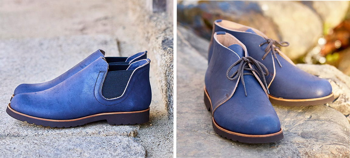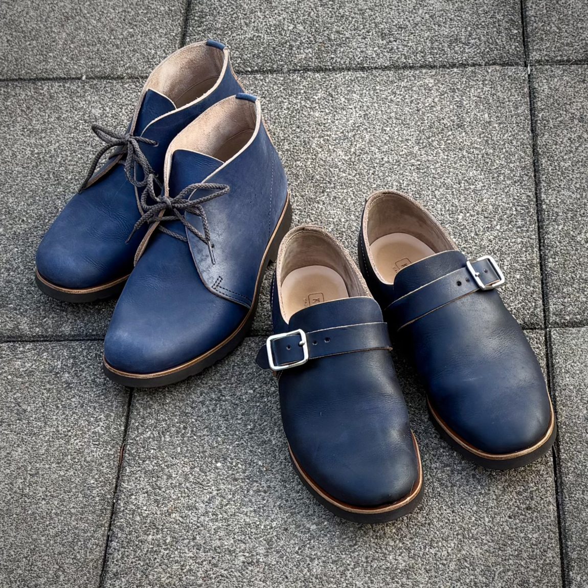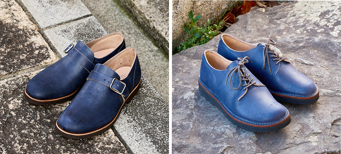 どれも、インディゴの青い色が個性的で、ブラックやブラウン系の革の定番品とは大きく違う印象の靴になっています。