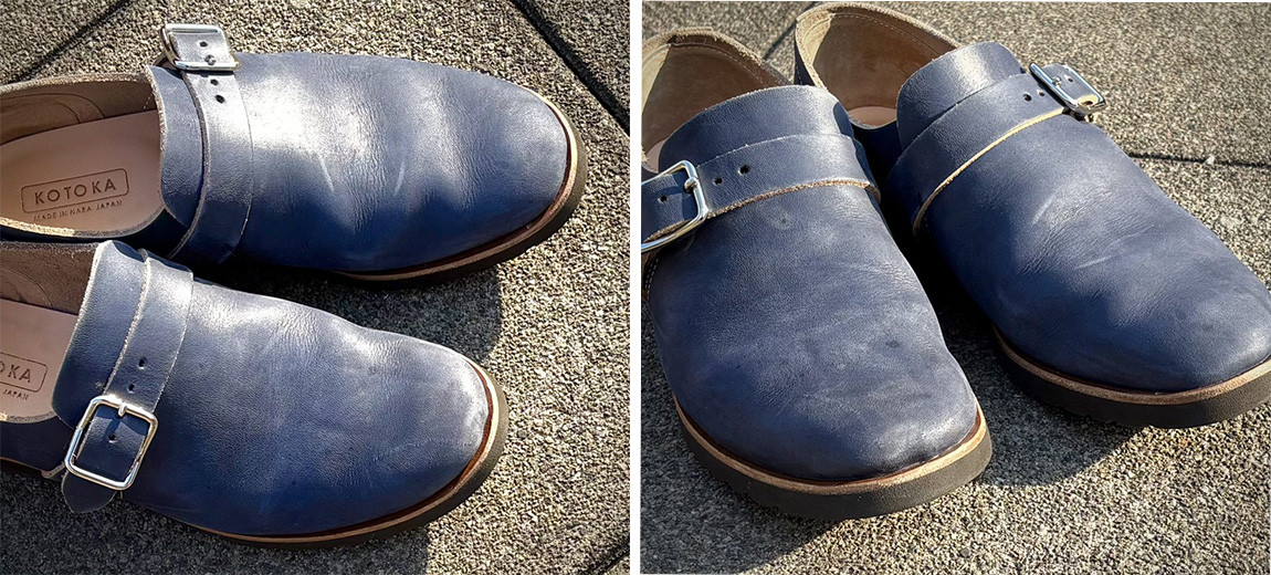 インディゴ染めのKOTOKA、デニムのように「育てがい」のある革靴です。