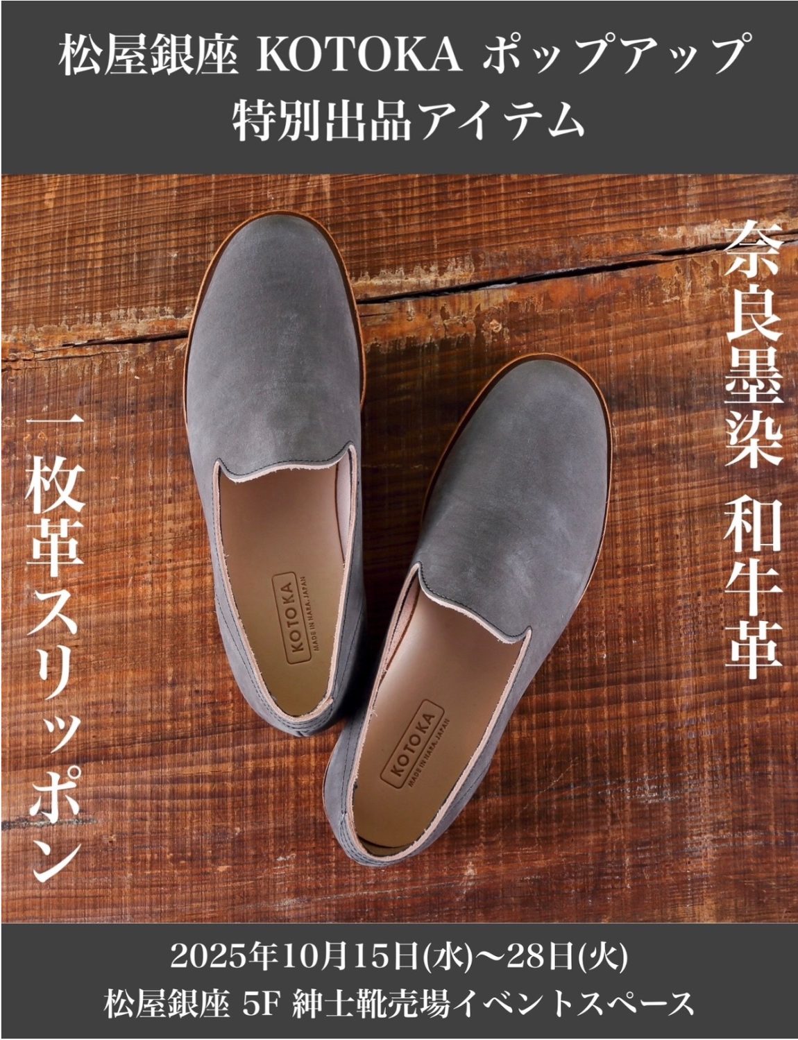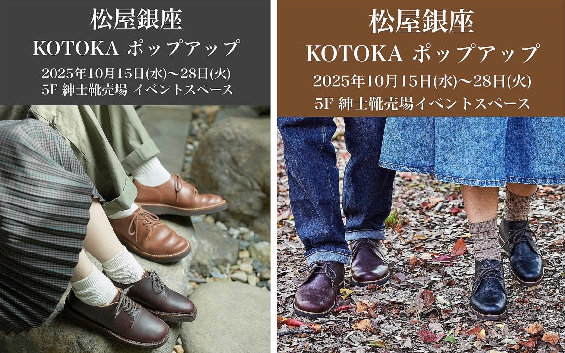 来る10月15日(水)~28日(火) の2週間、松屋銀座5F 紳士靴売場イベントスペース で KOTOKA ポップアップ を開催いたします。