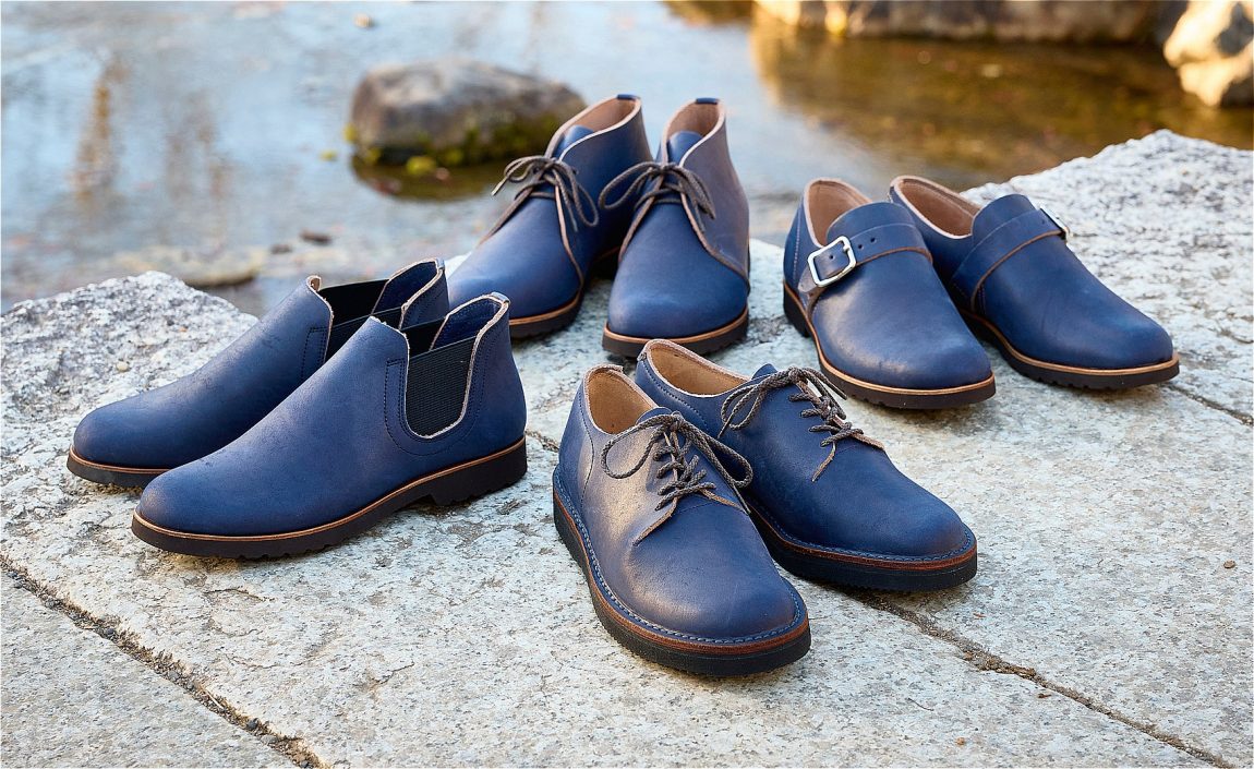 特別な革を使った限定生産のKOTOKA 4アイテムを発売いたしました。革は、このシリーズのために特別につくったインディゴ染めのレザーです。タンニンでなめし、生成りのデニム糸のような淡いベージュに染めたレザーを、インディゴ染料で丘染めしたもので、履き込むと独特の色落ちが楽しめるように仕上げられています。3mmもの厚さの極厚の革ながら、履くとよく足に馴染み、風合いが増す靴となりました。